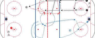 - Le défenseur transporte légèrement la rondelle sur la ligne bleue