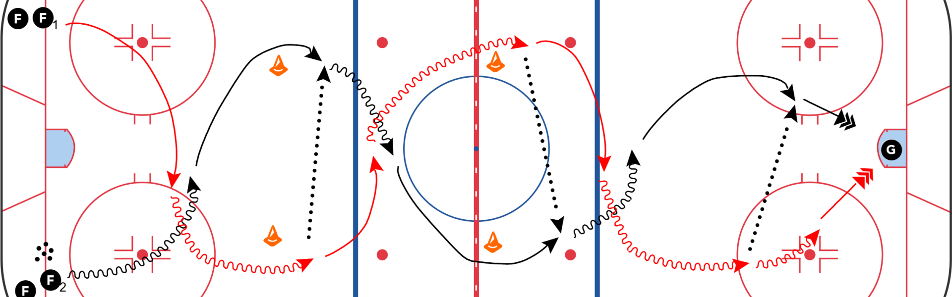 - 2 entraineurs avec des rondelles au cas que le duo échappe la rondelle en cours de route.